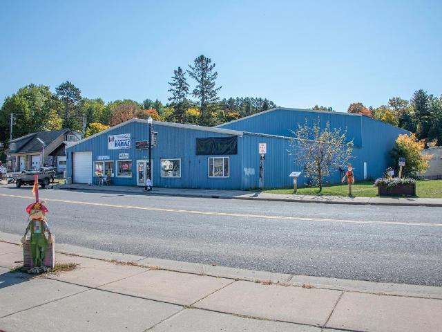 This 10,500 sq. ft. commercial property in downtown Phelps is packed with potential! Located across STH 17 from North Twin Lake, it benefits from high traffic and excellent visibility. The back section features 24? high walls and is ideal for storage, while the front half is divided into two heated areas with in-floor heating. The midsection, approximately 4,100 sq. ft., is perfect for repair work or as a workshop. The front section, over 1,000 sq. ft., boasts large windows with stunning lake views, making it ideal for retail displays. Bring your vision to this prime location or pair it with the nearby listing to launch your own marina business!